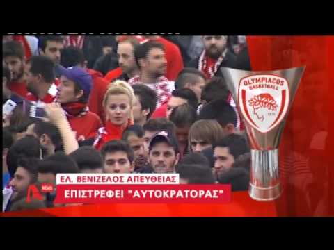 Παίκτες, διοίκηση και τεχνικό τιμ έγιναν σύνθημα στα χείλη του "ερυθρόλευκου" κόσμου, ενώ με τη σειρά τους οι πρωταγωνιστές της μεγάλης επιτυχίας του Ολυμπιακού ανέβηκαν στην οροφή του πούλμαν αγκαλιά με το τρόπαιο.